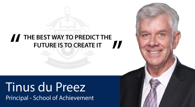 * Mr du Preez will be leading the School of Achievement into a new era of change in specialised education. In accordance with the Education White Paper 6 on Inclusive Education, the School of Achievement’s role will change from a specialised school to a specialised school as a resource centre. The role of the School of Achievement in the broader school community will be extended in as much that the staff’s expertise will be available to all schools in the area. The primary mission of the School of Achievement will still be to provide quality educational intervention for the learners enrolled at the school.